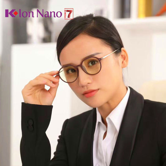 K-ION NANO round frame brown radiation-proof Klon nano glasses Kacamata Kesihatan Free shipping K-lon nano Klonnano kion nano kionnano